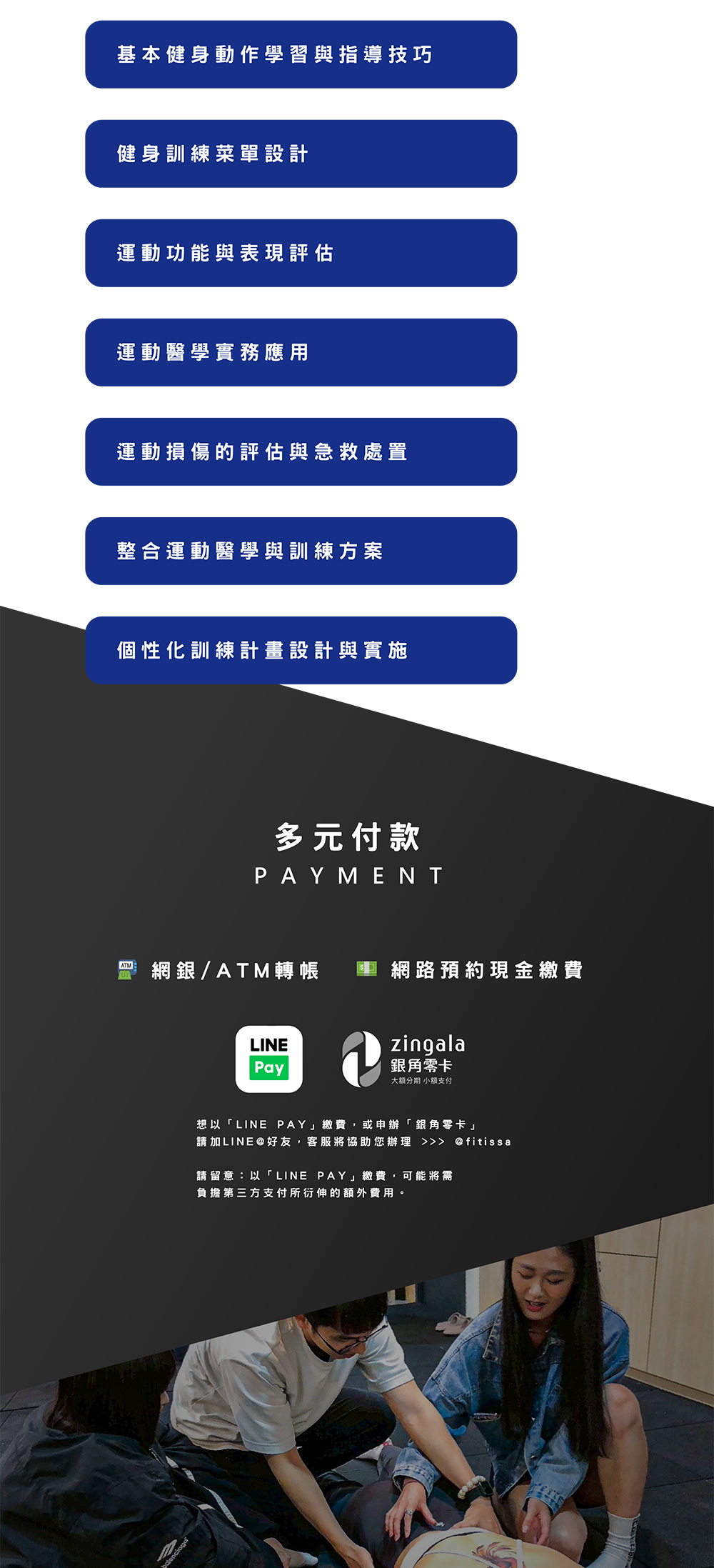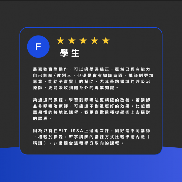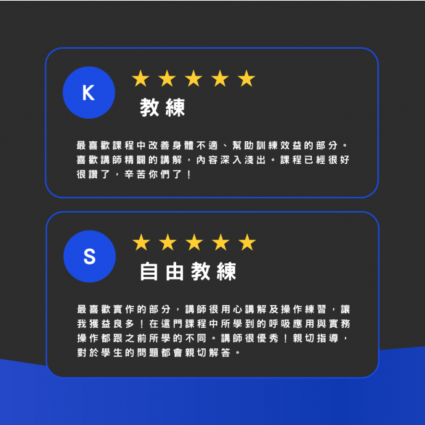 - 學會在實務中靈活應用,幫助學員訓練更有效、身心更健康