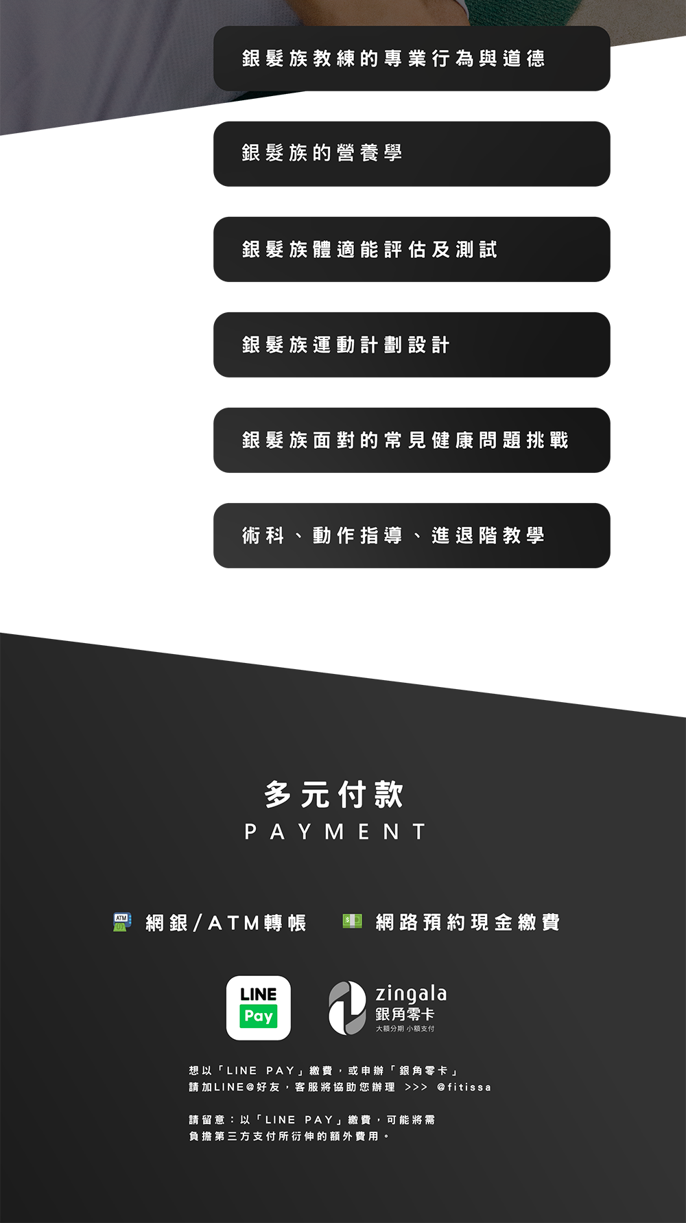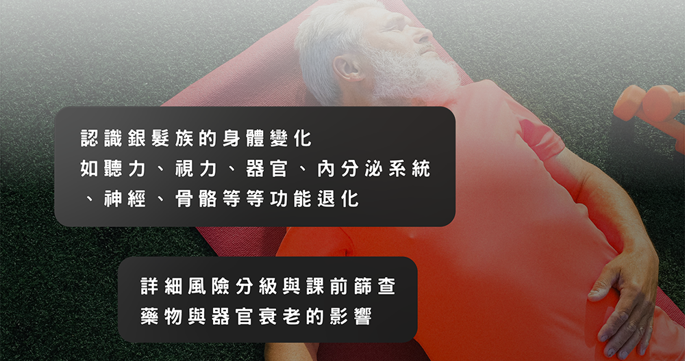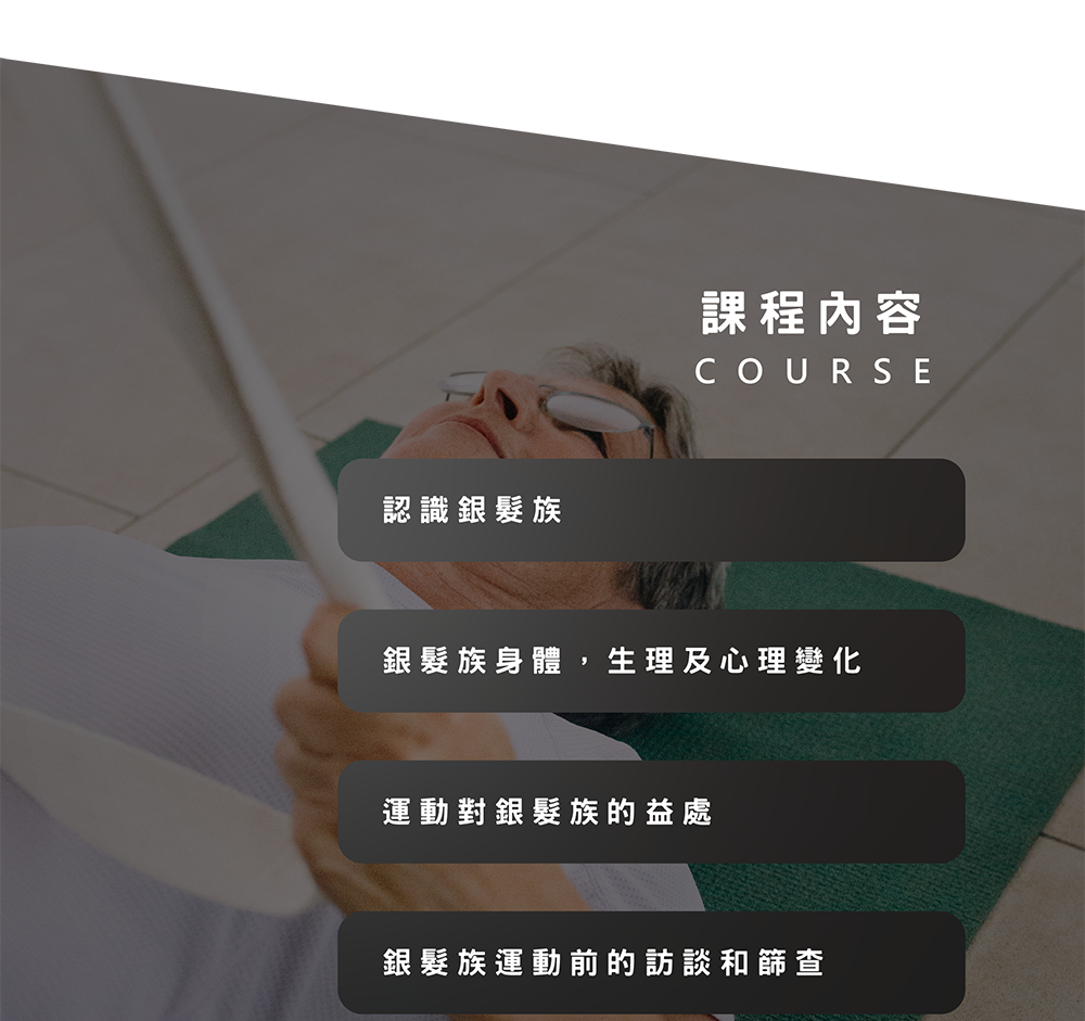 - 為銀髮族設計運動計畫,並幫助他們實踐健康目標